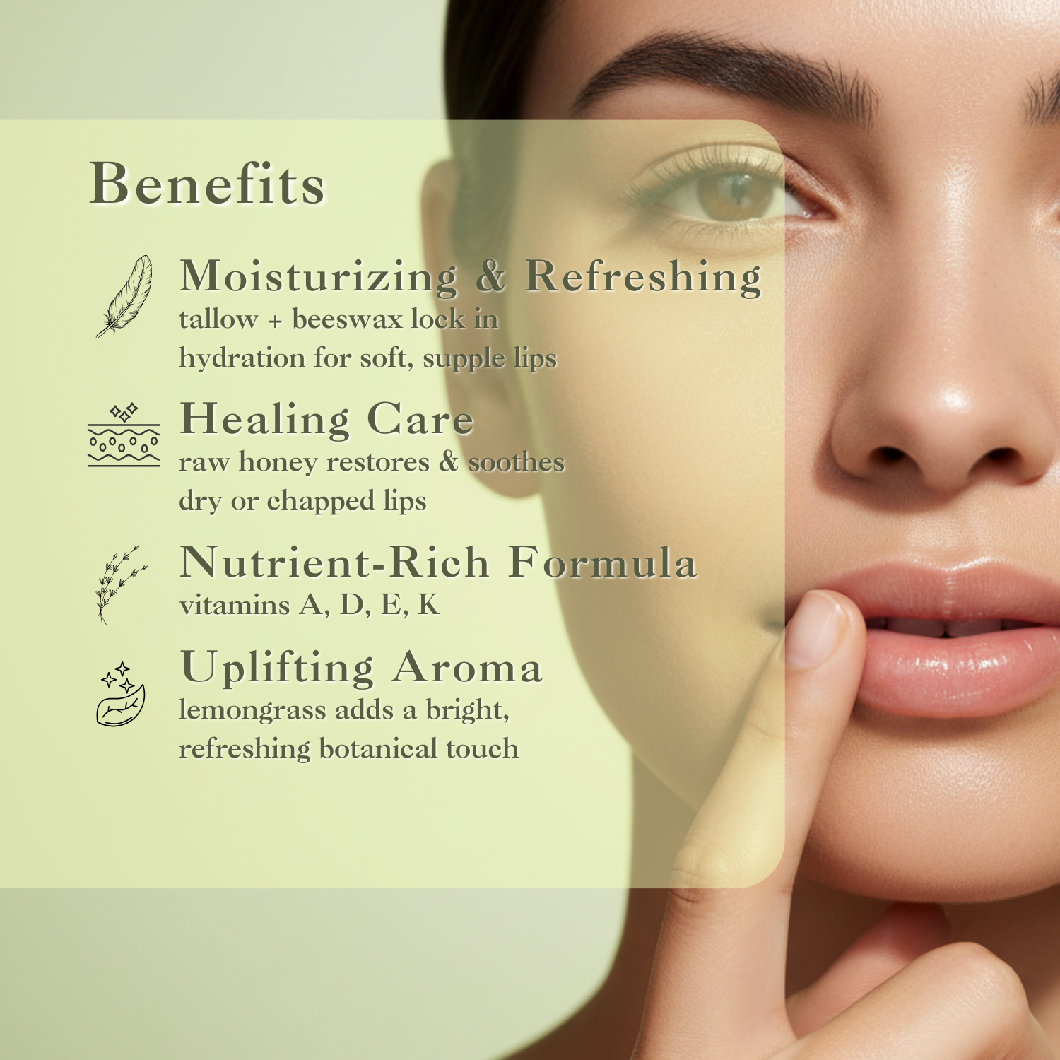 - Moisturizing & Refreshing: Grass-fed tallow and organic beeswax lock in hydration for soft, supple lips.