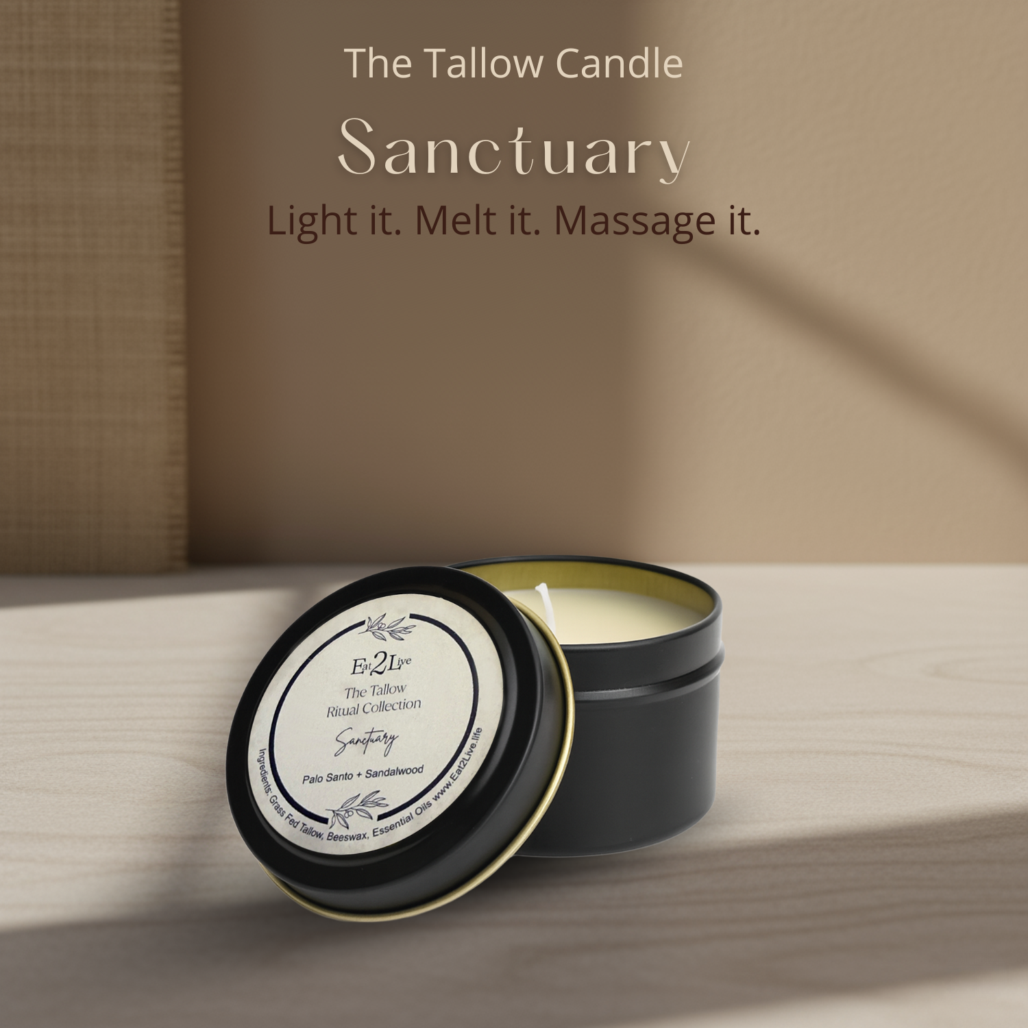 Experience the union of flame and touch. Each Tallow Candle burns cleanly with grass-fed tallow and beeswax, transforming into a golden balm that melts into skin, hydrating, healing, and deeply grounding.